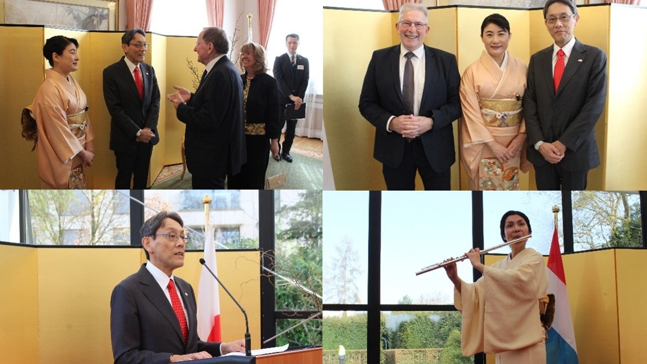 野村大使は、スピーチにおいて、天皇陛下の御誕生日のお慶びを述べた後、二国間関係について、昨年は大阪・関西万博の機会にギヨーム大公殿下(当時は皇太子殿下)、アンリ前大公殿下、フリーデン首相、ベッテル外相が訪日されたことをはじめとして活発な要人往来や経済・文化分野における交流が深化したことを振り返りました。また、2027年の日ルクセンブルク外交関係樹立100周年を控え、基本的価値及び原則を共有するルクセンブルクとのパートナーシップがあらゆる側面で一層強化されていることを歓迎しました。