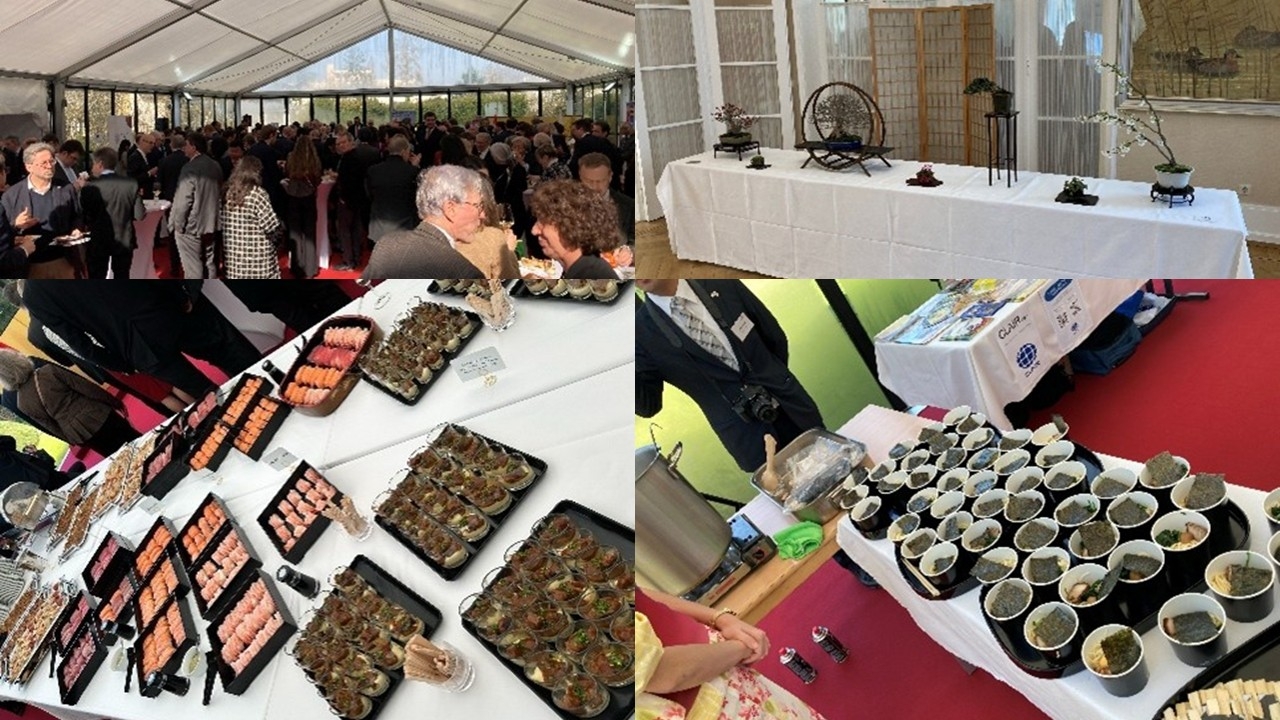 La réception a été rehaussée par un concert de flûte donné par Mme KIMURA Yuriko. À cette occasion, le tourisme, la gastronomie et les produits de la mer du Japon ont été mis à l’honneur. De nombreuses entreprises et associations - comme ANA Brussels, Clair Paris, Bonsai Frënn Minett Déifferdeng, 8PEACE, JAL Paris, House of Japan, Sakura Voyage, Sense of Japan etc. - ont accueilli les invités sur leurs stands.